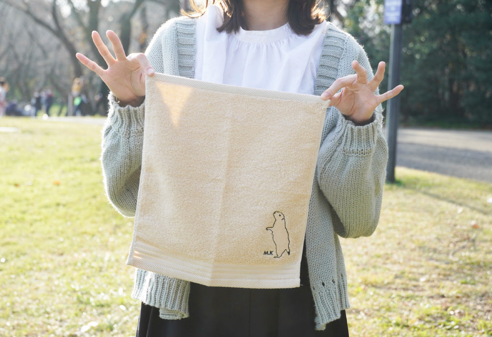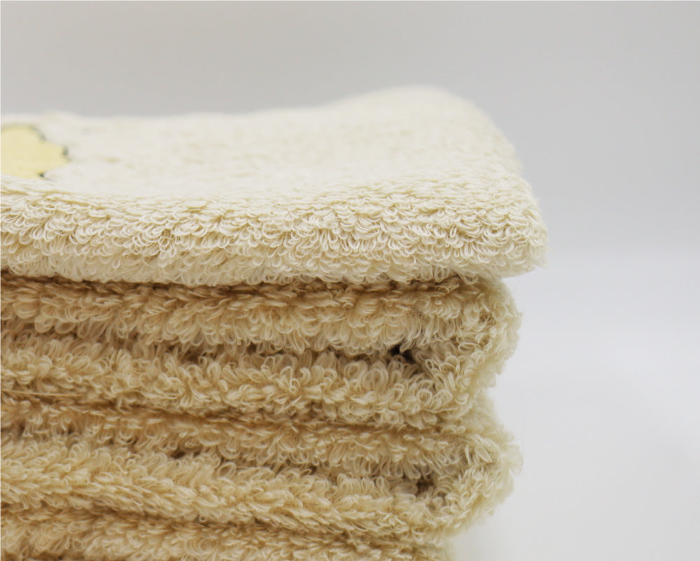 シンガーソングライターの近藤真由さんがイラストを手がけた数量限定ハンドタオル。無撚糸の中でも特に細い糸を使用した、ふんわりと柔らかな質感が特徴です。